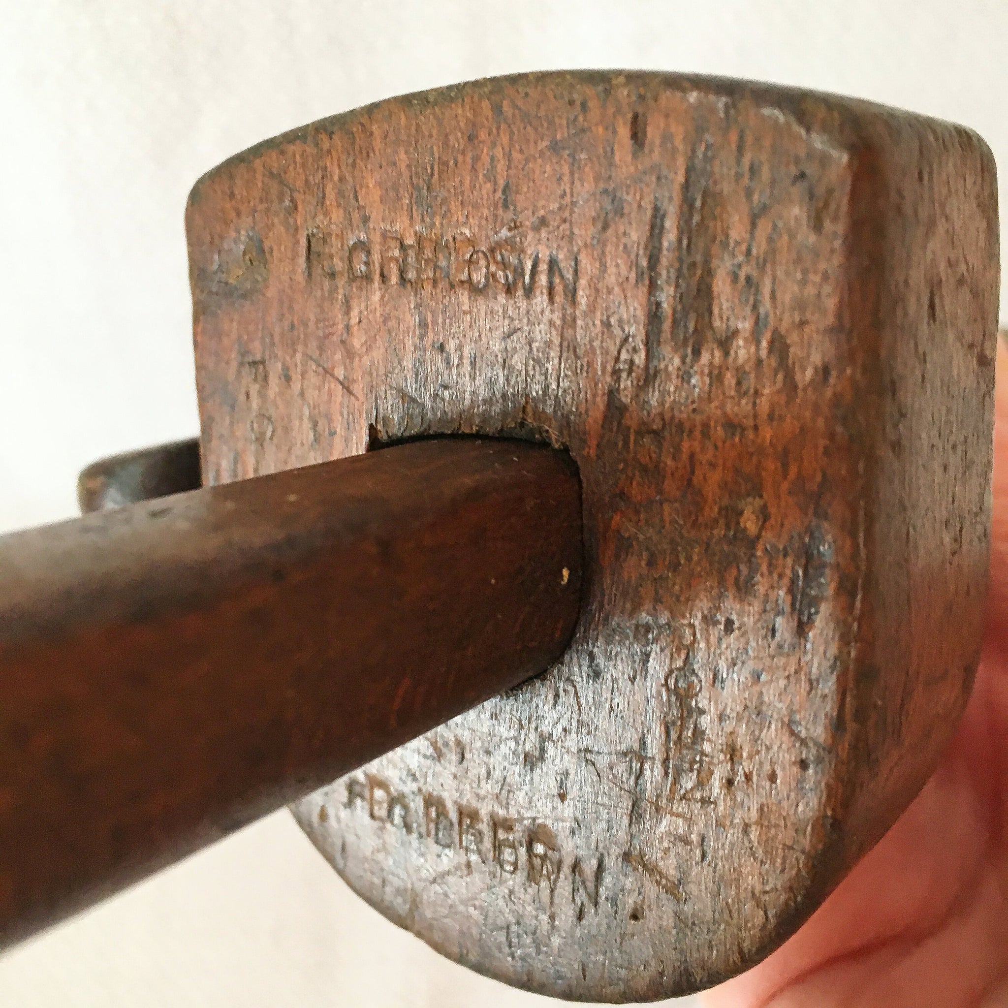 The scribe measures approximately 8.5" long and appears quite early, likely handmade. The thumb screw handle looks hand carved. There is a name stamped in two places, though it appears to have been struck over and is not easily readable. Based on construction, materials, and wear, these tools likely date to the mid- to late-1800s. Perfect for a collection but could be used for intended purpose!