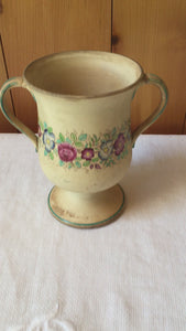 Antique two-handled vase with pretty floral design and 'No. 20' mark – perfect for display or a small flower arrangement."